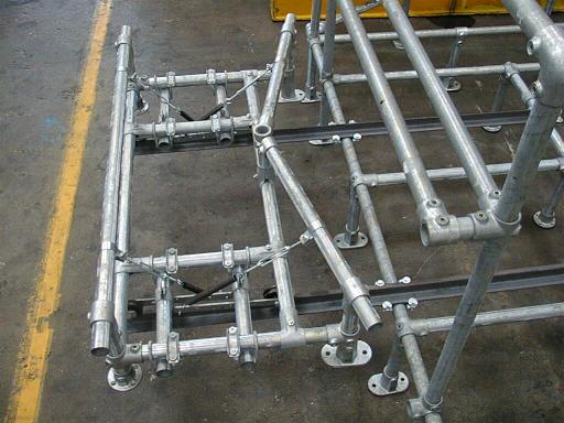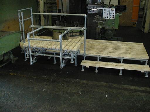 Gestelle und Gerüste für großflächige Arbeitsplattformen und Konfektionstische.